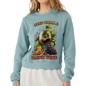 Keep Calm and Drink Wine Cropped Sweatshirt – Funny Women’s Sweatshirt – Printed Crop Crew Sweatshirt