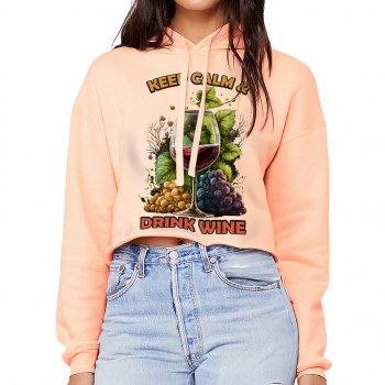 Keep Calm and Drink Wine Women’s Cropped Hoodie – Funny Cropped Hoodie – Printed Hooded Sweatshirt