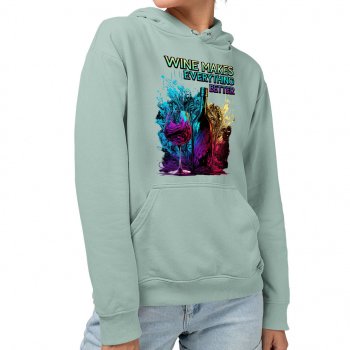 Wine Makes Everything Better Sponge Fleece Hoodie – Wine Bottle Hoodie – Graphic Hooded Sweatshirt