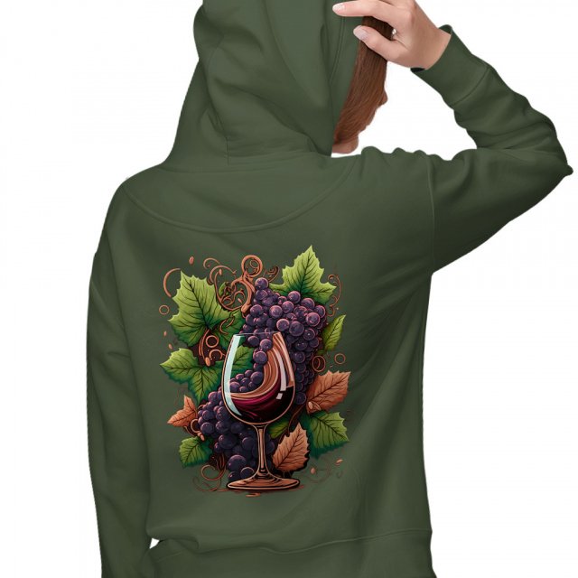 Wine Themed Women’s Zip Hoodie – Grape Print Hooded Sweatshirt – Illustration Hoodie